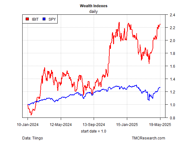 Wall Street hasn’t been shy about cashing in on crypto. There are now nearly 40 ETFs targeting various niches, including bitcoin and ether as well as trading strategies focused on the assets. The largest crypto ETF is iShares Bitcoin Trust (IBIT). Launched in January 2024, the fund currently has more than $65 billion in assets. Since inception, IBIT’s price has more than doubled, far ahead of the S&P 500’s roughly 25% increase over that span, based on SPDR S&P 500 ETF (SPY).
