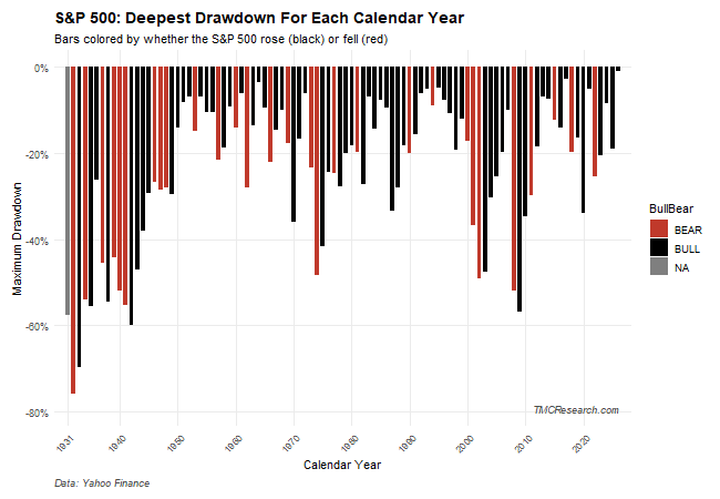 Significant intra-year declines are common, even in positive calendar years for stocks