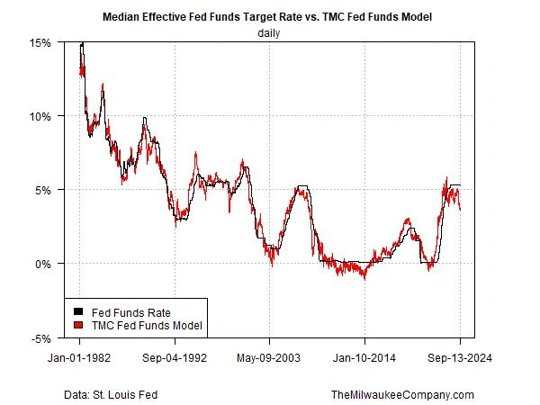 Although it would be surprising if the Fed cuts more than 50 basis points, a ½-point reduction appears to be the revised consensus view. Why? The primary reason: The data lends support to such a policy change – a view that’s been highlighted since July in updates of TMC’s Fed funds model.