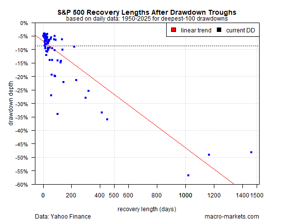 The historical record suggests that the current drawdown requires as long as 2-3 months to potentially recover the previous high, assuming that the current level marks the S&P 500’s trough.