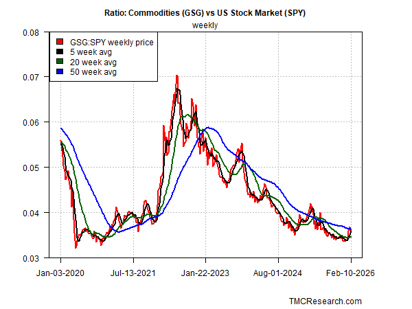 Commodities have been recovering lost ground vs. equities lately